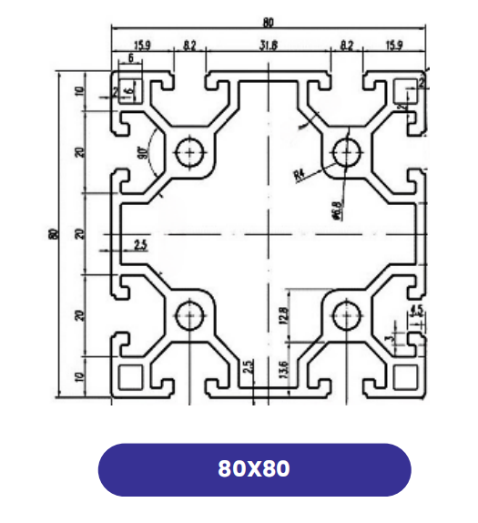 Thanh nhôm định hình 80x80 slot 10 – thiết kế cực chắc chắn, chịu tải lớn, chuyên dùng trong bệ máy công nghiệp, khung robot tự động hóa và các hệ thống cơ khí nặng.