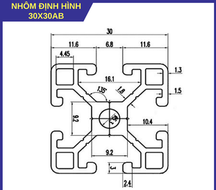 Nhôm định hình 30x30AB là dòng sản phẩm kết hợp ưu điểm của 2 dòng A và B, mặt cắt 30x30mm, hệ rãnh 8mm. Thiết kế tối ưu về độ cứng – phù hợp cho các ứng dụng yêu cầu lực chịu tải cao và lắp ráp linh hoạt.
