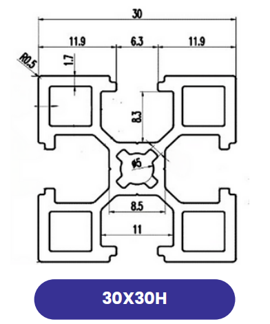 Nhôm Định Hình 30x30H – Dạng Nặng, Chịu Lực Cao