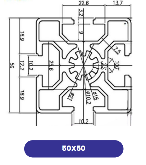 Nhôm định hình 50×50 là dòng nhôm kỹ thuật có tiết diện vuông lớn, slot 10mm, thiết kế chịu tải cao, đáp ứng nhu cầu sử dụng trong các dây chuyền sản xuất tự động, robot công nghiệp và khung máy trọng tải lớn.